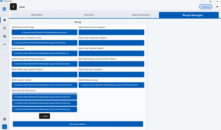Generate comprehensive reports and recaps effortlessly. OMNISCIENT calculates interval summaries, fluid properties, and performance metrics automatically—no manual work required.